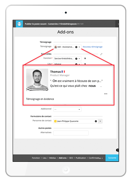 Vanuit HR organizer kan u aan elke vacature de juiste getuigenis koppelen. Dit geeft een perfecte ondersteuning van de betrokken vacature.